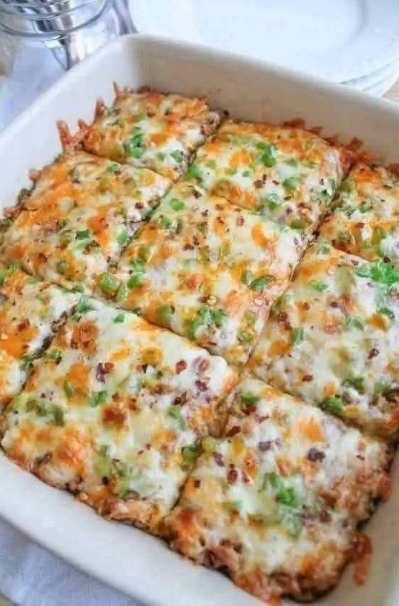 - Bake uncovered for 25–30 minutes, or until biscuits are cooked through and cheese is melted and bubbly.